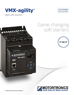 VMX-agility™ has been developed to exceed the exacting demands of industrial automation motor control clients. VMX-agility™ delivers stable start and stop ramps for smooth, efficient performance. Three standard frame sizes cover all typical applications from 7.5kW to 250kW at 500VAC, 15 – 350HP at 600VAC.
