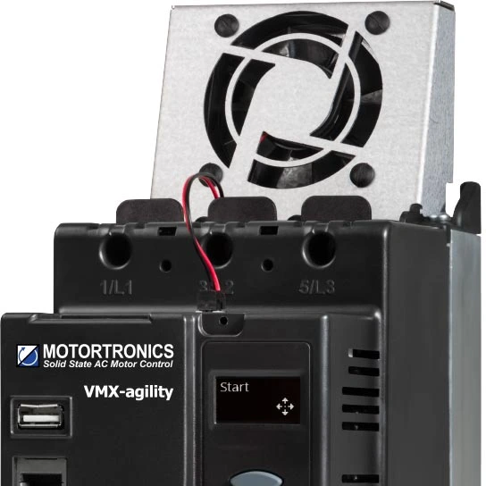 Optional cooling fan for frequent duty applications with up to 40 starts per hour – size 1, and from 10 to 40 starts per hour (rating dependent) – size 2.